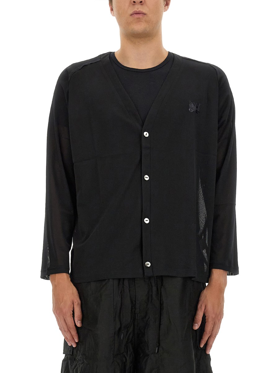 NEEDLES CARDIGAN CON SCOLLO A V E RICAMO LOGO
