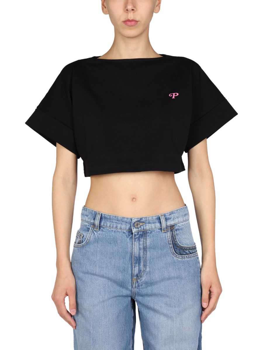 PHILOSOPHY DI LORENZO SERAFINI T-SHIRT CROPPED IN JERSEY DI COTONE CON STAMPA LOGO