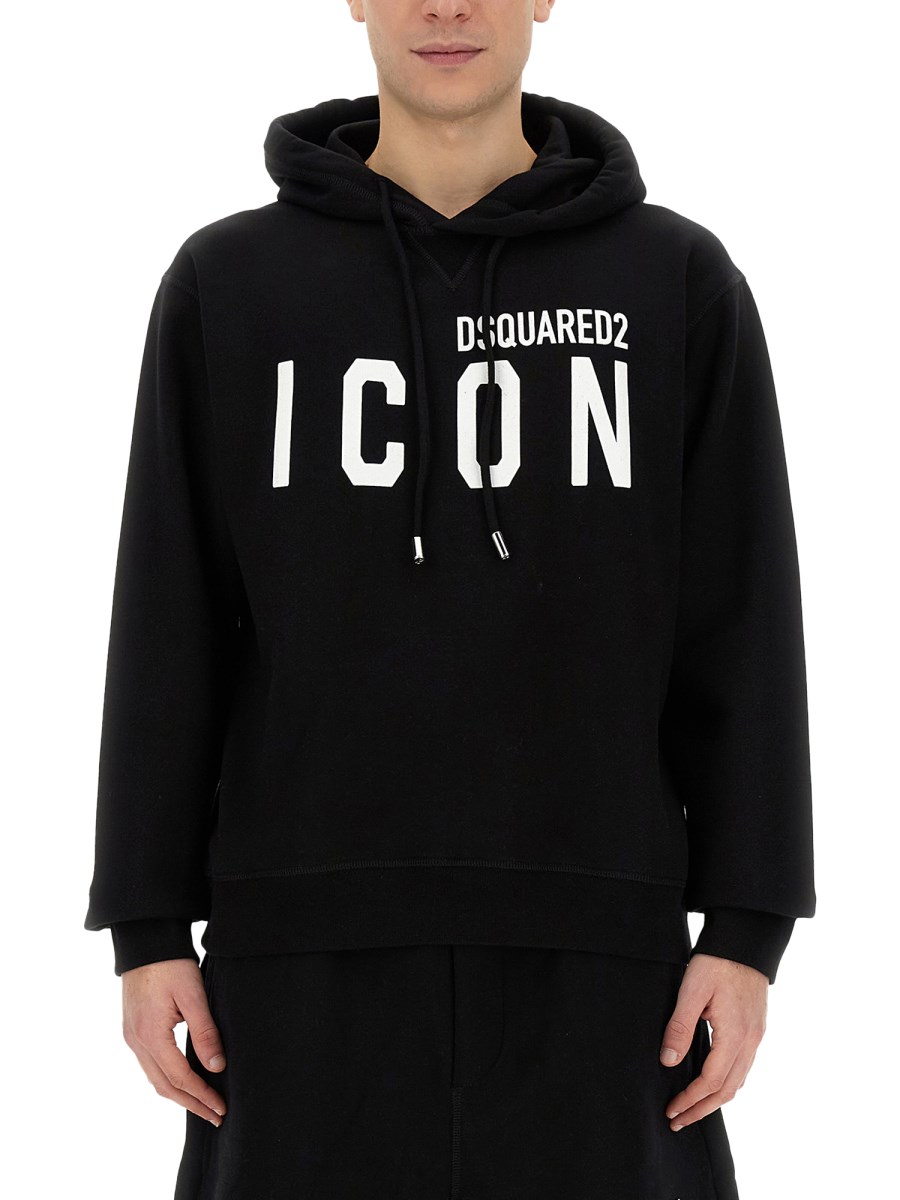 DSQUARED FELPA IN COTONE CON CAPPUCCIO CON STAMPA LOGO ICON saldi | Scarpe