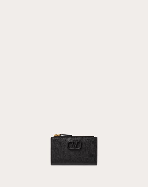 Portamonete e carte VLogo Signature Valentino Garavani in vitello granato - Logo ricoperto in pelle - Chiusura con bottone a pressione - Scomparto portamonete con chiusura a zip - Otto vani portacarte e due tasche piatte - Due tasche piatte sul retro - Dimensioni: W13,5 x H8,5 x D1 cm - Made in Italy