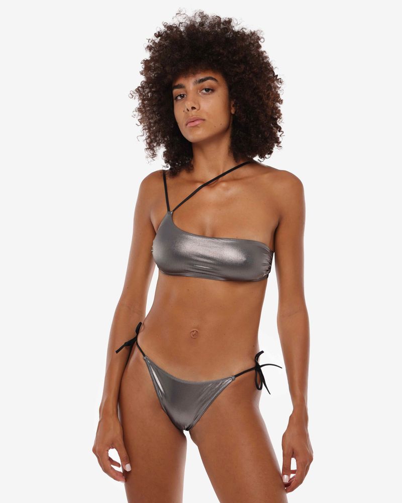 "DESCRIZIONE: slip foderato, con laccetti in contrasto CARATTERISTICHE E VANTAGGI: -COMFORT: vestibilità aderente e rapida asciugatura -INNOVAZIONE: inserto in tessuto con effetto metallico -INTERESSE: capo trasversale, si può combinare con gli altri capi dellacollezione. -PLUS: facile manutenzione, lavabile in lavatrice, resistente anche al cloro. "
