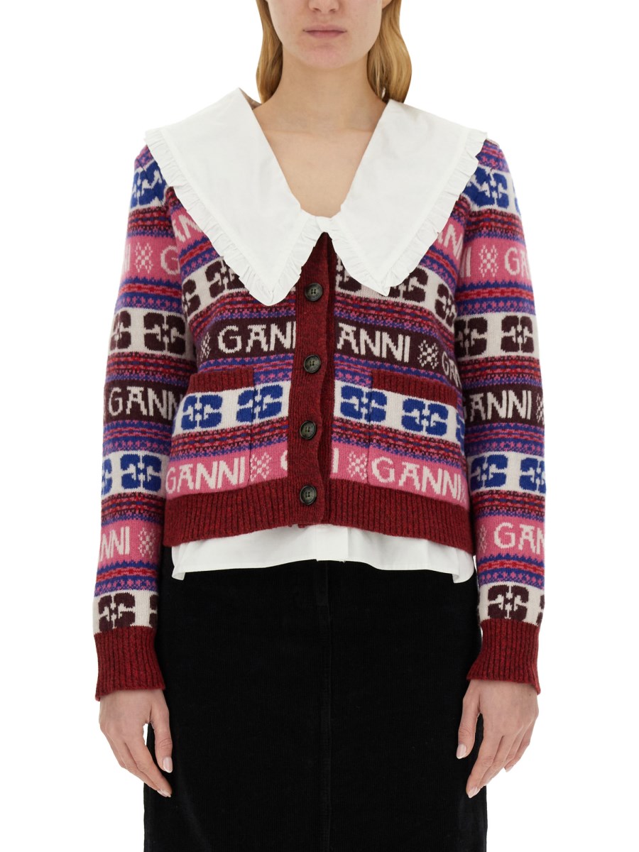 GANNI CARDIGAN IN LANA CON SCOLLO A V