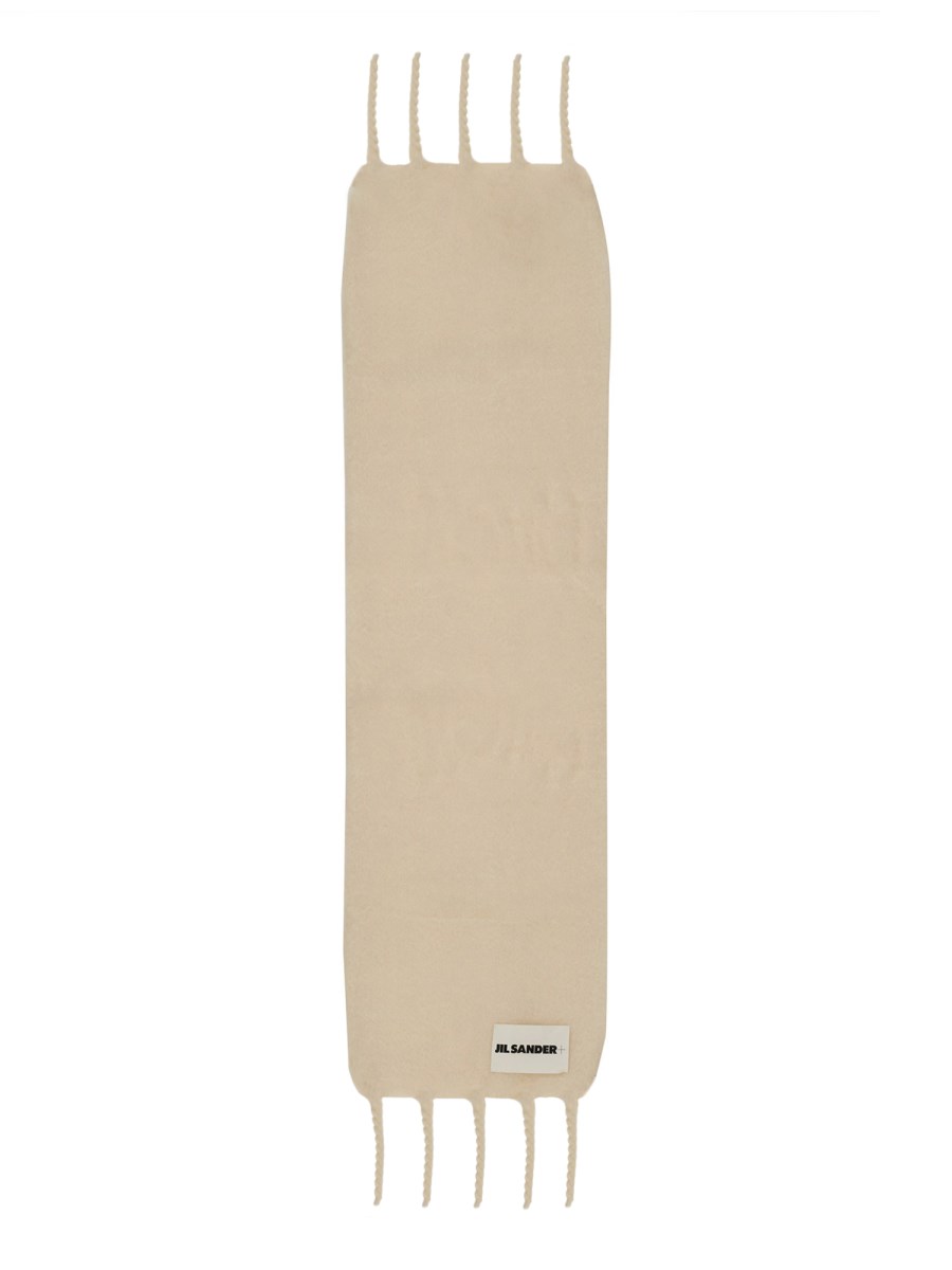 JIL SANDER SCIARPA LUNGA IN MOHAIR CON PATCH LOGO