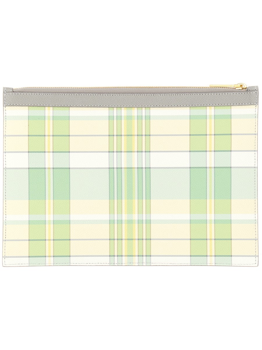 - CHIUSURA CON ZIP- DETTAGLIO FRONTALE 4-BAR- MOTIVO A QUADRI- DIMENSIONI: A 21 CM X L 29.5 CM X P 0.5 CM- 100% PELLE DI VITELLO- MADE IN ITALY