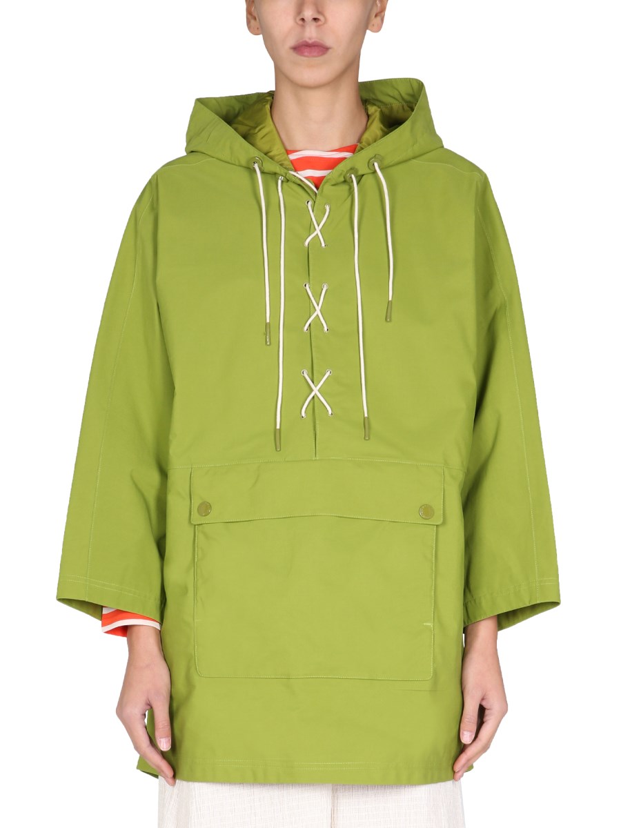 - CAPPUCCIO REGOLABILE- CHIUSURA FRONTALE A INCROCIO CON COULISSE- UNA TASCA APPLICATA FRONTALE CON PATTA- INTERNO FODERATO- 55% POLIESTERE, 45% COTONE- MADE IN UNITED KINGDOM- LA MODELLA É ALTA 185 CM E INDOSSA LA TAGLIA 10 UK