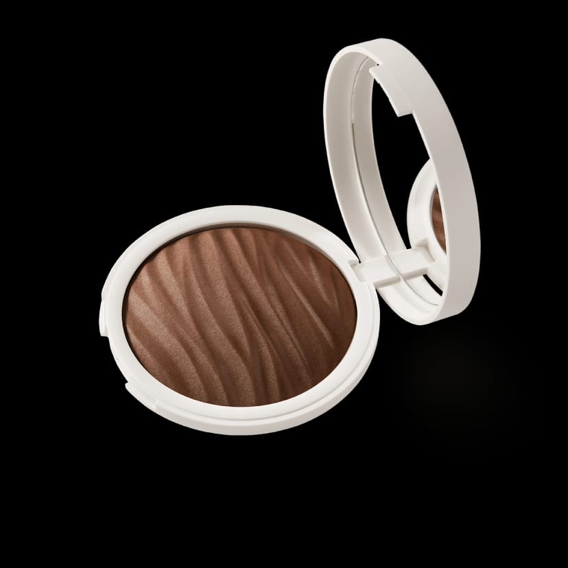 Una carezza che scalda il viso all'istante, scolpisce otticamente i contorni del volto e regala un radioso effetto abbronzatura.