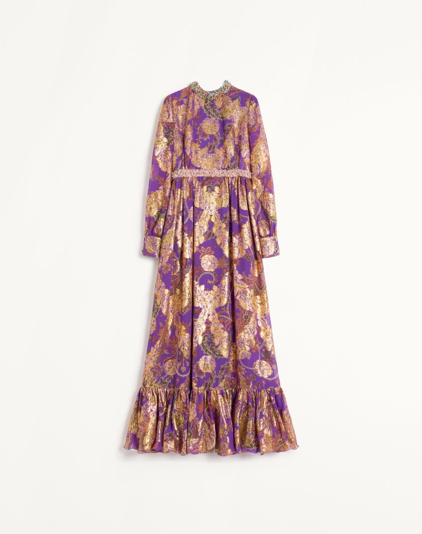 Valentino Handbags Abito Lungo In Fil Coupe' Lame' Cachemire Apres L'hiver Ricamato per Donna in Multicolor | Valentino IT