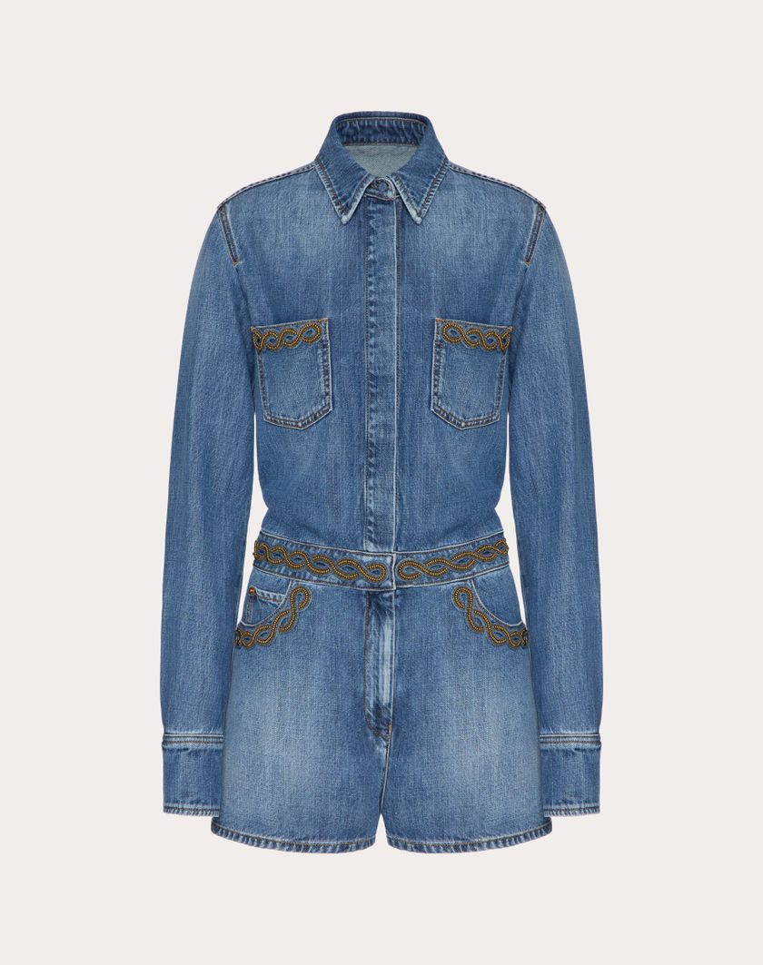 Valentino Handbags Tuta In Denim Blu Medio Ricamata per Donna in Denim | Valentino IT
