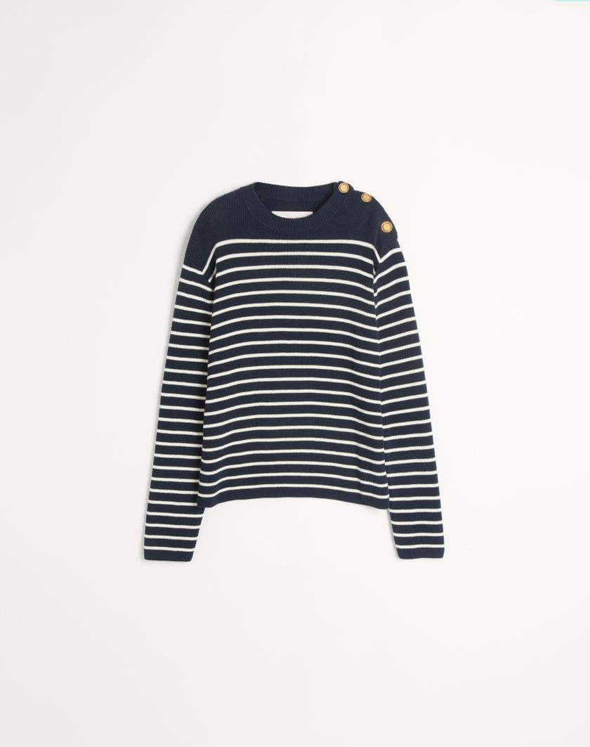 Maglione girocollo Valentino in cotone a righe con bottoni sulla spalla