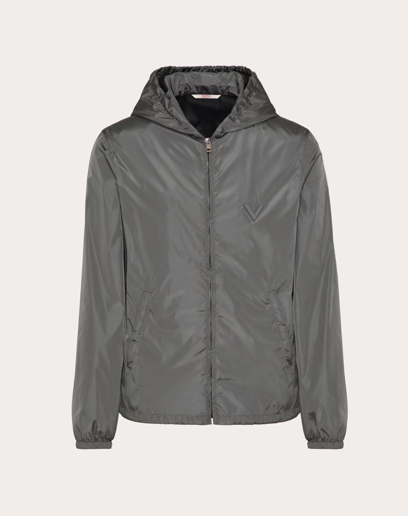 Borse / Valentino Handbags / Valentino Handbags Giacca A Vento Con Cappuccio In Nylon Con V Detail Metallica per Uomo in Grigio | Valentino IT saldi