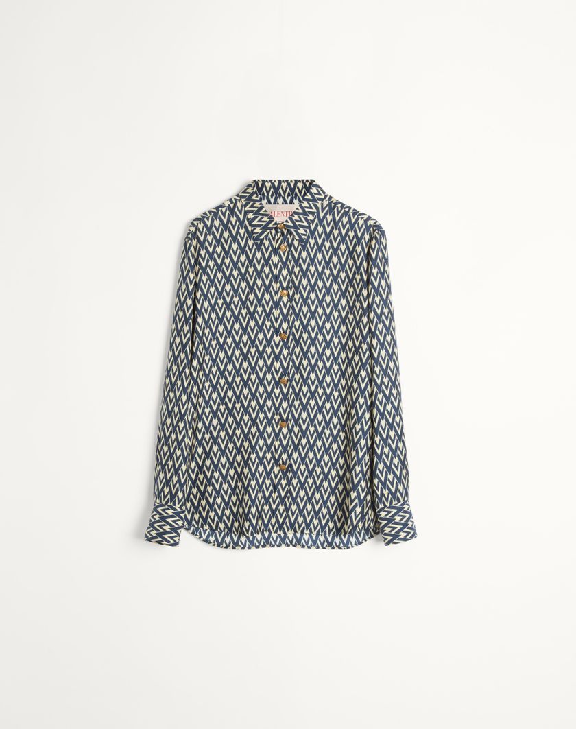 Camicia Valentino in twill di seta con stampa Toute la V all over